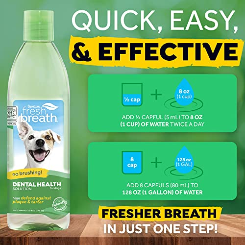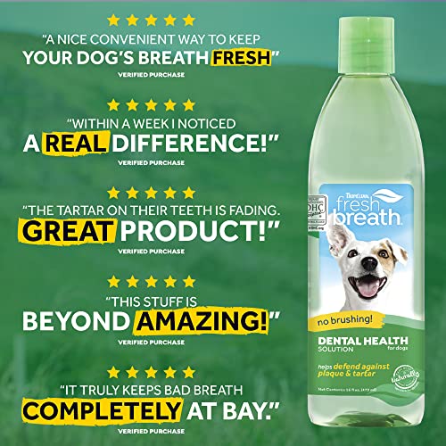 TropiClean Fresh Breath Dog Teeth Cleaning – Dental Care for Bad – Freshener Water Additive Mouthwash Helps Remove Plaque Off Dogs Teeth, Original, 473ml