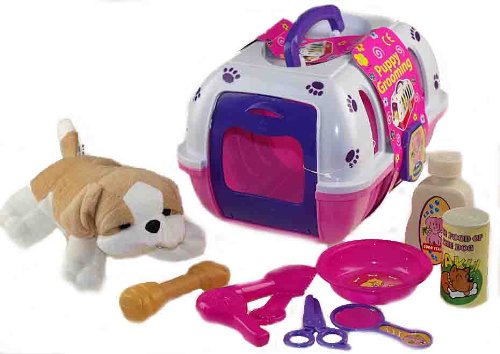 A TO Z Vet Play Set, Pet Puppy Carrier, Soft Plush Dog And Grooming Toys