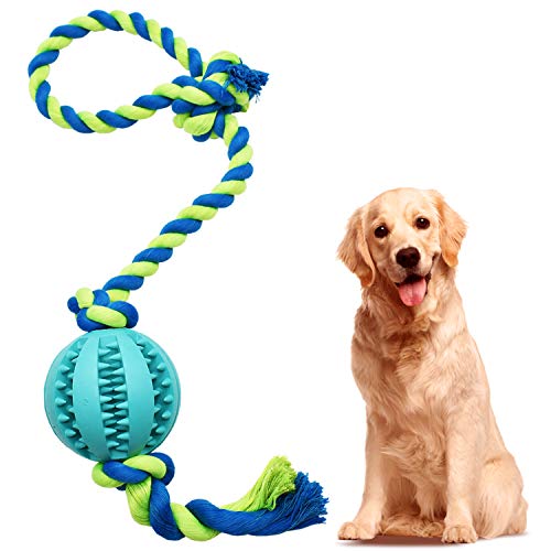 viewm Dog Rubber Ball Chew Toys Aggressive Chewer Interactive Toy Tooth Cleaning Play with Stronger Rope for Small Medium Large Dogs