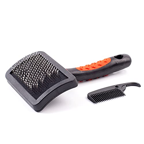 SAY GOODBYE TO SHEDDING: Vitazoo slicker brush dog is perfect for tangle knot Long, medium, short -haired, thin, thick, curly. These grooming brushes for dogs handles it well unlike a comb. It cleans & shines even the thickest coats.