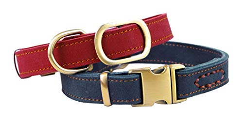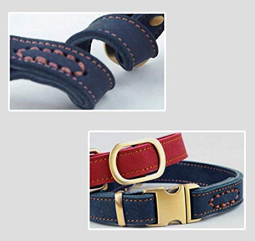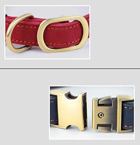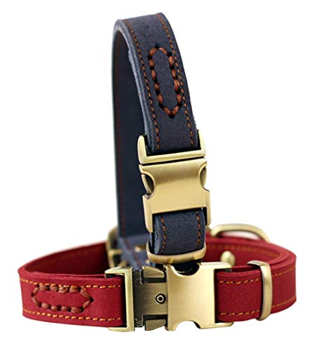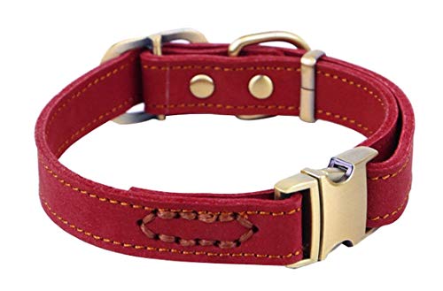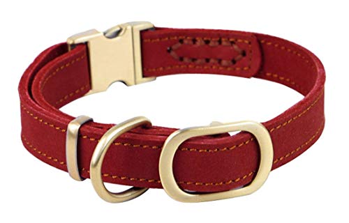 Vivi Bear Luxury Polished Leather Collar for Puppy/Dogs, Adjustable Neck 30-43cm (11.8″-16.9″) & 2cm/0.8″ Wide, Collar For Puppy Medium/Small Pet Dogs With Strong Dog Leash Hook – Red
