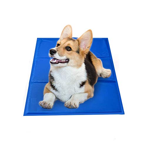 HueLiv Dog Cooling Mat, Large Pet Cool Mat Dog Cooling Pad with Self Cooling Gel, Non-Toxic Activated Gel Cooling Pad Pet Ice Mat, Great for Dogs Cats to Stay Cool This Summer, Blue(90 * 50cm)