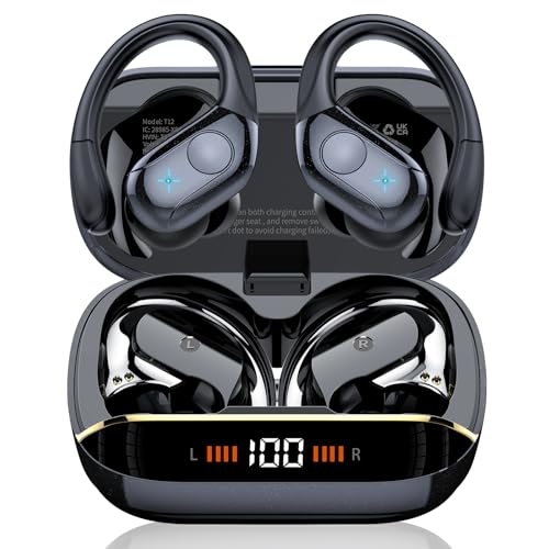 Wireless Earbuds, 75H Bluetooth 5.4 Headphones, Sport Wireless Earphones with 4 ENC Mic, Stereo Bass, IP7, Bluetooth Earbuds with Earhooks for Workout/Running/Work, Dual LED Display Ear buds, Black
