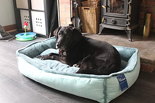 Wolfybeds Large Padded Luxury Fleece Dog Bed Limited Edition in turquioseoceans (36″ x 24″) washable covers