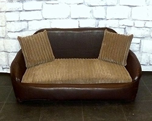 Zippy Small Sofa Dog Bed – Brown Faux Leather + Mocha Chunky Cord – Wipe & Wash Clean
