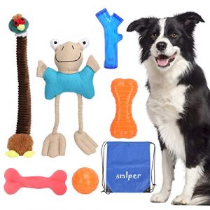 6 Pack Dog Toys Puppy Toys, Dog Chew Toys Bacon Flavored Bones Toys for Aggressive Chewers Tough Ball Teething Squeaky Toys for Small Medium Large Dog