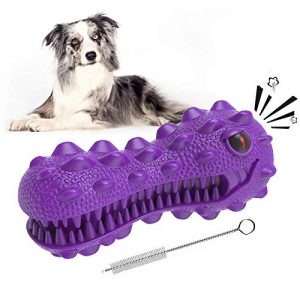 EZSMART Indestructible Dog Toys, Tough Dog Toothbrush Toys for Aggressive Chewers, Durable Teething Boredom Interactive Dog Chew Toys for Teeth Cleaning – Dinosaur Shape, Milk Flavor
