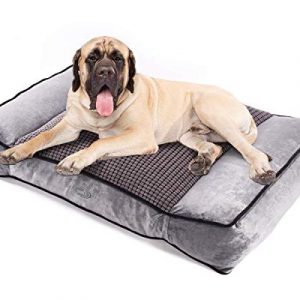 Pecute Large Dog Bed(102x69cm), Shredded 20 cm Memory Foam Orthopaedic Pet Bed for Good Support,Warm Plush & Cool Silk Double Sided Design Four Seasons Available,Removable Cover Washable Easy to Clean