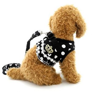 SELMAI Puppy Cat Girl Dog Ruffles Polka Dots Small Dog Vest Harness Lead Set Mesh Padded No Pull
