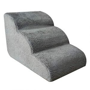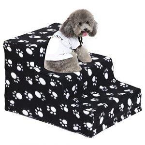 amzdeal Dog Stairs 3 Steps Pet Dog Easy Climb Fleece Covered Pet Stairs with Removable cover