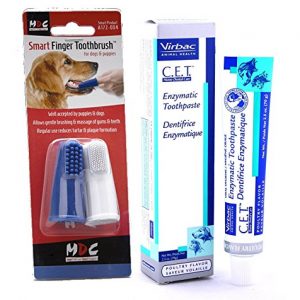 Virbac Enzymatic Toothpaste (Poultry Flavour 70g) with Smart Finger Toothbrush for Dogs (twin-pack) Bundle