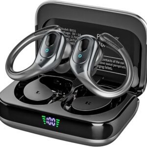 sajawass Wireless Headphones, True Wireless Stereo Sound Bluetooth 5.3 Earbuds with LED Power Display, IPX7 Waterproof Open Ear Buds with Ergonomic Earhook, Ideal for Gym, Jogging, Commuting