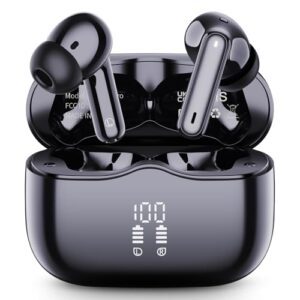 Wireless Earbuds, Bluetooth Headphones, Ear Buds with 80hr Playtime, LED Power Display, Noise Canceling, LED Power Display, IPX7 Waterproof Earphones for Gym/Workout/Sport