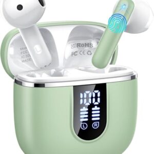 Wireless Earbuds, Bluetooth 5.4 Earphones In Ear Hi-Fi Stereo Deep Bass, Bluetooth Headphones with 4 ENC Noise Cancelling Mic, 40H Playback IP7 Waterproof Earbuds Comfortable Earbuds for Work, Green