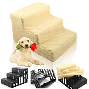 Beyondfashion Pet Cat Dog Little Older Doggy 3 Steps Stairs with Soft Plush Washable Cover