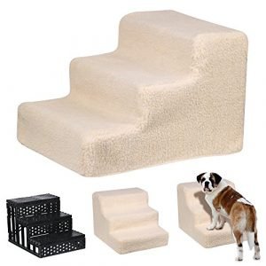 D2B Lightweight Pet Dog 3 Steps Stairs Portable Pet Ladder Ramp with Soft Plush Washable Cover